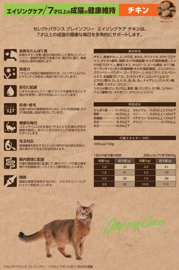 セレクトバランス グレインフリー 猫エイジングケア チキン