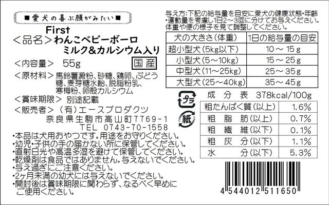 First わんこベビーボーロ ミルク&カルシウム入リ 55g