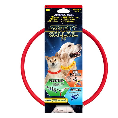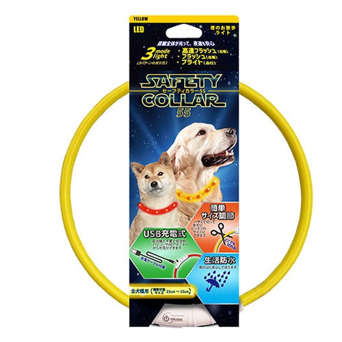 ●首輪全体が光る、お散歩用ライトです。 ●USB充電式で、パソコンやACアダプターから充電ができサイズ調節も簡単です。 ●高速フラッシュ ( 点滅)・フラッシュ(点滅)・ブライト(点灯)の3モードの 光り方が、スイッチひとつで選択可能です。