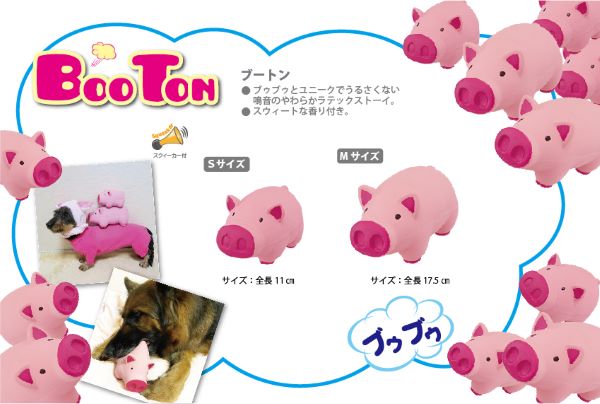コロコロ丸いカタチがかわいいブタさん。 ブゥブゥ、ユニークな鳴り音のラテックストーイです。中身に綿が入っているのでつぶれにくくなっています。スウィートな香り付き。