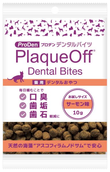 プロデンデンタルバイツ ●商品説明 毎日のおやつでかんたんデンタルケア。毎日噛むことで歯垢・歯石が軽減し、口臭を抑えられます。 ●特徴 ・毎日数粒与えるだけ ・人工保存料・添加物・着色料は一切使用していないので安心 ・小型犬、猫も食べやすい小粒おやつ ●ラインアップ プロデンデンタルバイツ〈犬用/猫用〉 プロデンデンタルバイツ サーモン味〈犬用/猫用〉