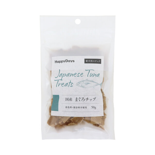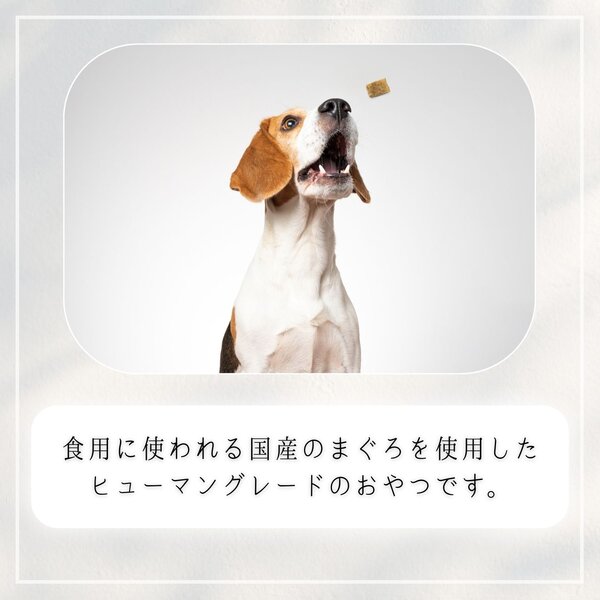 まぐろの旨みが凝縮された、嗜好性抜群の愛犬用おやつ。国産のまぐろを100%使用。着色料・保存料・酸化防止剤などの添加物不使用。チキンなどの肉類や小麦アレルギーの愛犬に配慮して、まぐろ以外の原料を使用していません。超小型犬、小型犬の小さい口でも食べやすいよう、薄くいチップ状に仕上げました。手で簡単に割れるので与えやすい形状です。