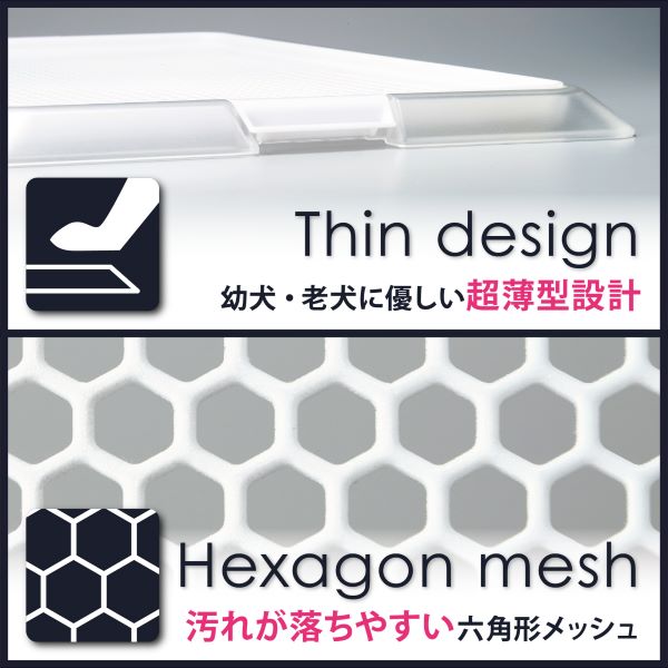 お部屋の空間に圧迫感のないクールでスタイリッシュな犬用のメッシュ付きトイレトレーです。 成形部材は長期に渡り清潔にお使い頂ける抗菌成分を配合。 底にはフローリングに置いても使える滑り止め機能付き。