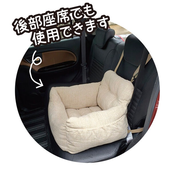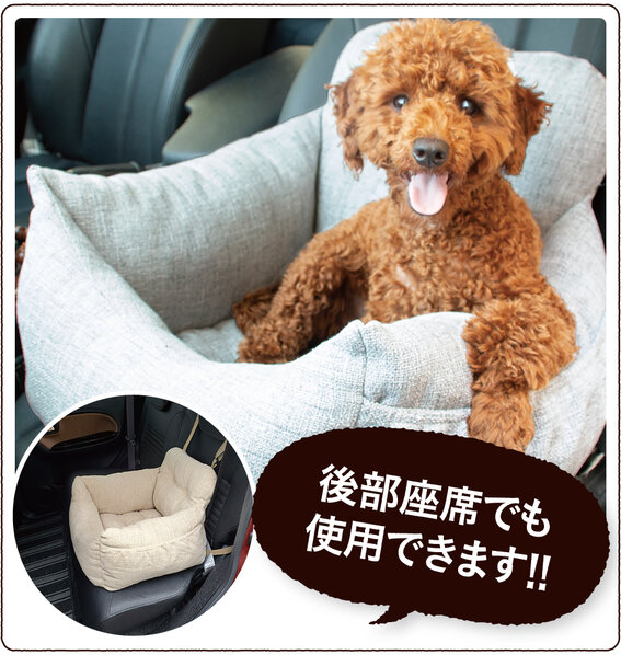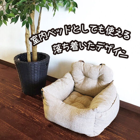 ドライブでのおでかけだけでなく、室内やサークル内でも使用出来る2wayオールシーズンベッド。 底面は滑り止め付き。 おでかけやドライブの際にも、カーシートに固定するベルトが装着されております。 カーシートの固定は、助手席、後部座席ともに可能。 サイドにポケット付きでペットのおやつやペットボトルを入れることも可能。 飛び出し防止リード付き。 室内でベッドを使用する際にカーシート固定用ベルトを収納できるポケットも装備。